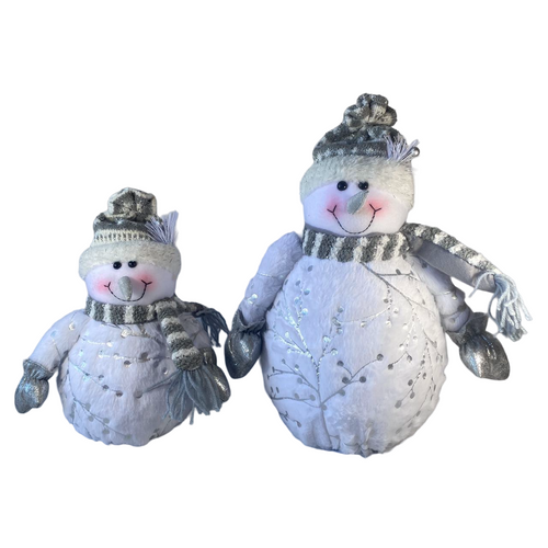 Muñeca de Nieve Blanco y Plata con Bufanta Para Decoracion de Navidad