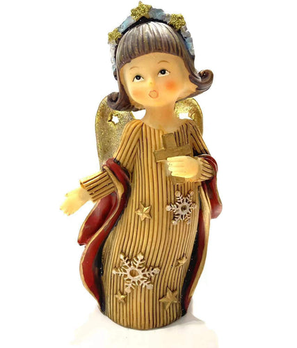 Figura Angel para decoracion de Navidad Pesebre Resina 15.5 cm Oro rojo