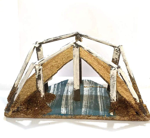 Puente de madera con corcho pintado para pesebre navidad 21.5x11.5x10 cm