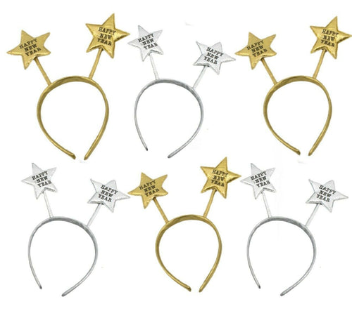 6 Diademas de "oro feliz año nuevo" color oro y plata estrella 6 unds Navidad