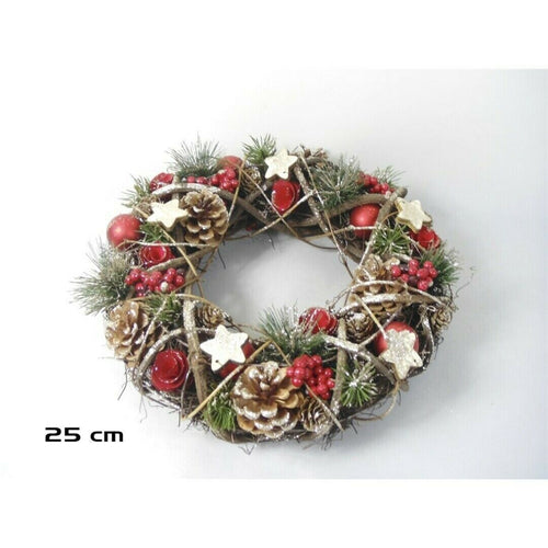 CORONA RAMAS CON PIÑAS ROJA 25 CM NAVIDAD