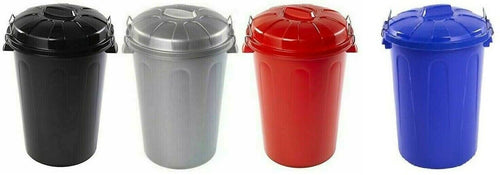 Cubo de Basura Papelera plastico redonda con tapa 51L negra / plata / roja