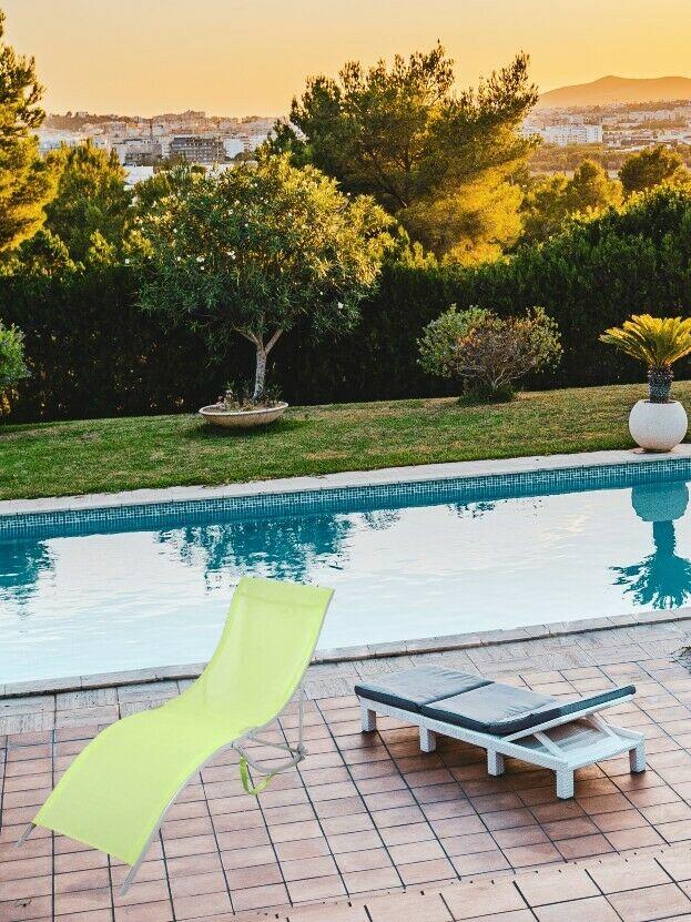 - - DISEÑO RESISTENTE, MODERNO Y ELEGANTE: Tumbona con estructura de aluminio resistente y ligera, con recubrimiento en polvo para mayor resistencia a la intemperie y a la corrosión, y tela de texteline transpirable