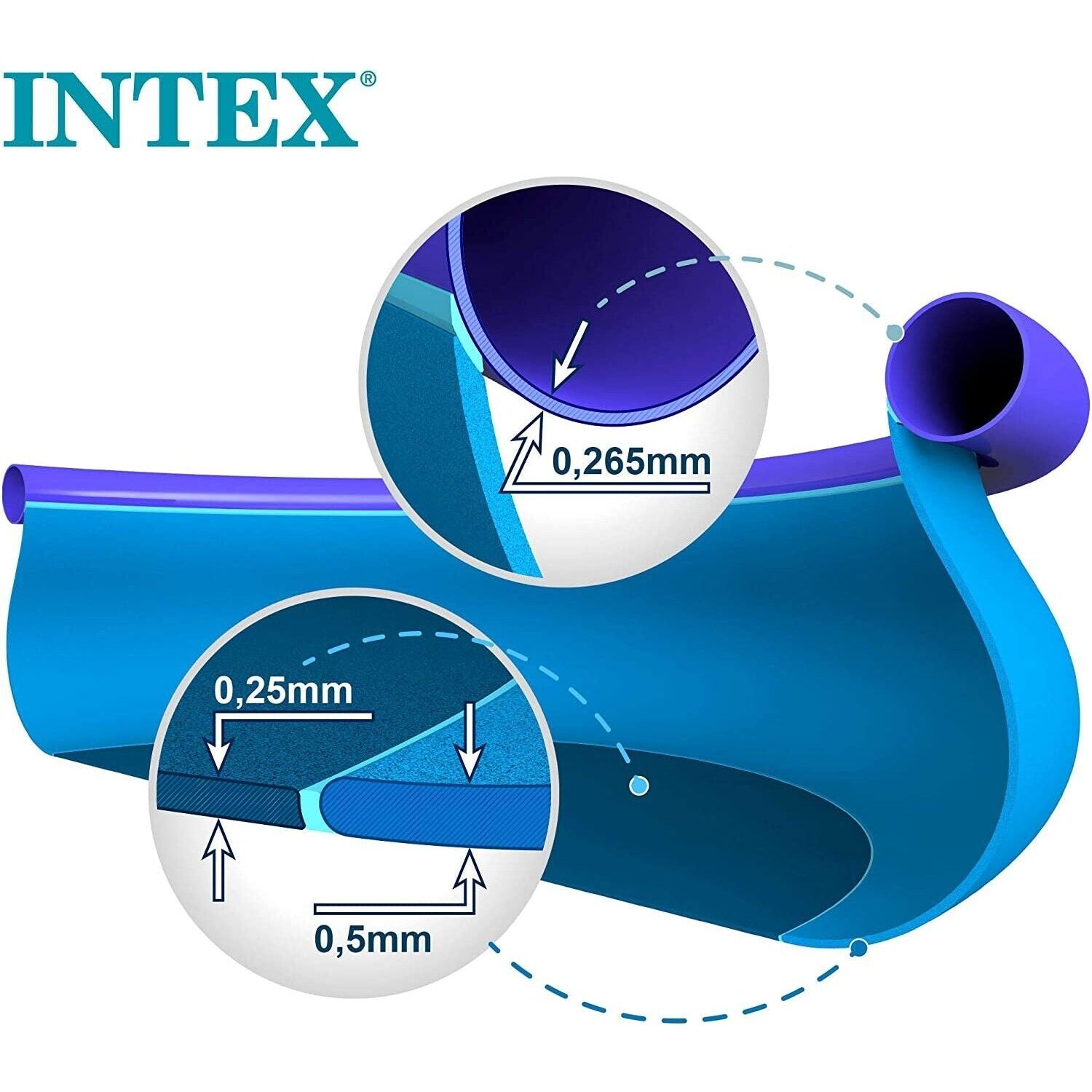 Las piscinas hinchables INTEX Easy Set cuentan con una lona compuesta por 3 capas laminadas: una malla interior de poliéster y 2 exteriores de PVC, que aportan en su conjunto resistencia y duración.