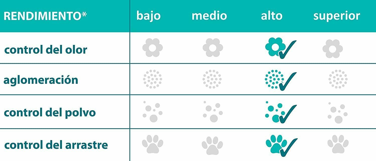 - Además, por sus gránulos más gruesos, evita que el gato arrastre la arena fuera de la bandeja.